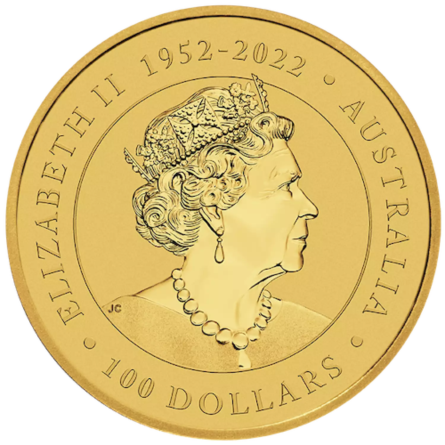 Originally known as the Gold Australian Nugget, the Bullion Kangaroo Coin is the one of the largest bullion coin program from the Perth Mint. The first 1 oz Australian Perth Mint Kangaroo Coin was released in 1991. The 2023 1 oz bullion coin is guaranteed by the Australian Government. The obverse features the Ian Rank-Broadley likeness of Queen Elizabeth II. The Reverse portrays a single iconic hopping red kangaroo surrounded by rays of sunlight.