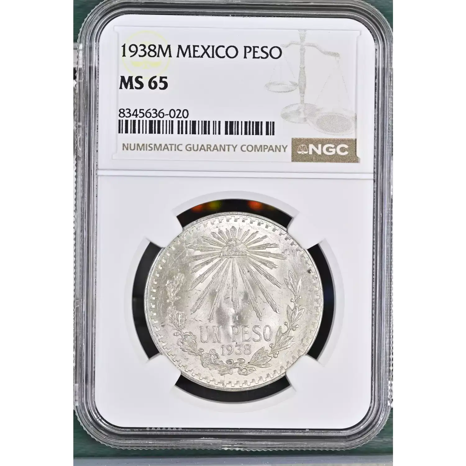 | Name | 1938 Mexico 1 Peso Silver Coin - NGC MS65 |