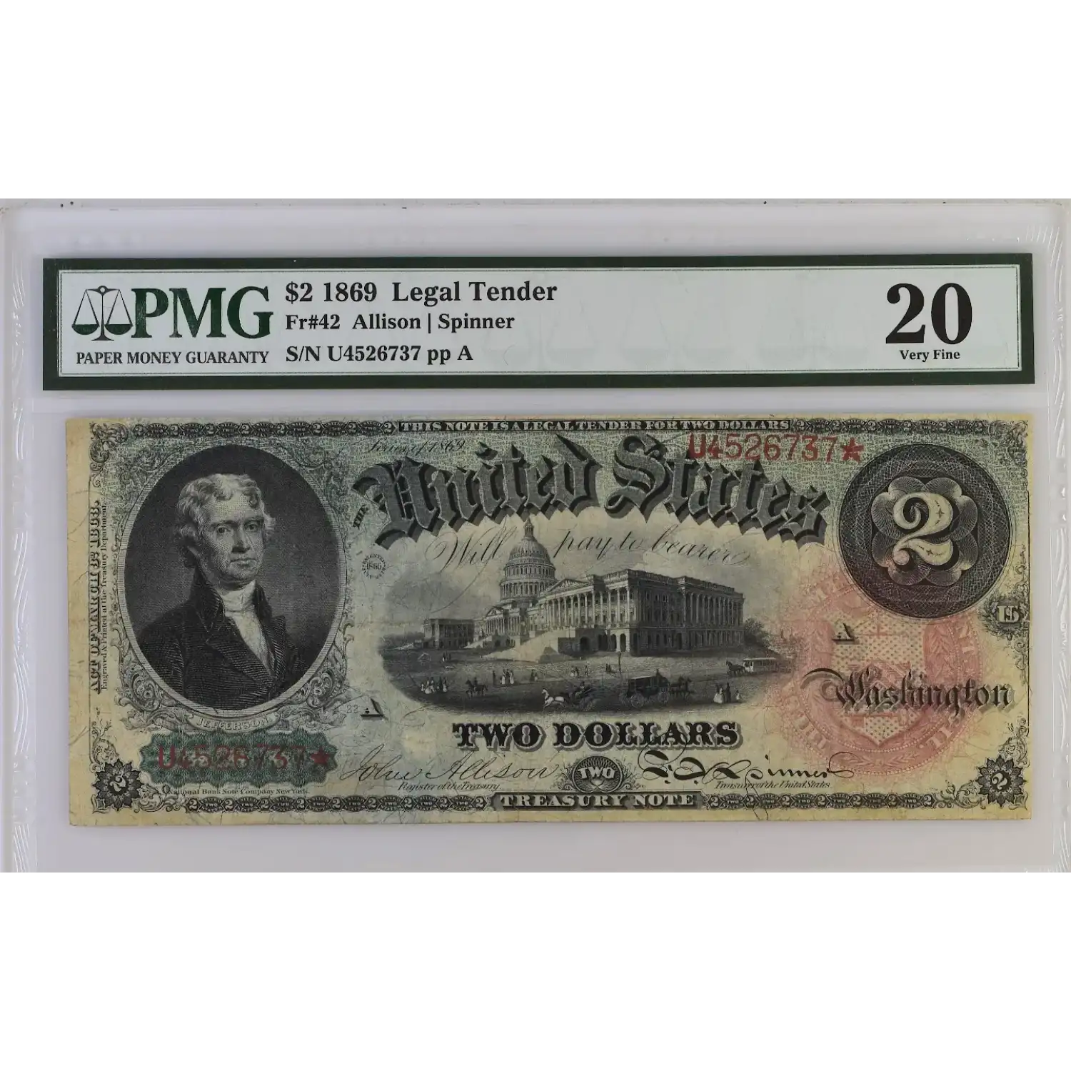 1869 $2 Legal Tender Note Fr 42 - PMG 20
