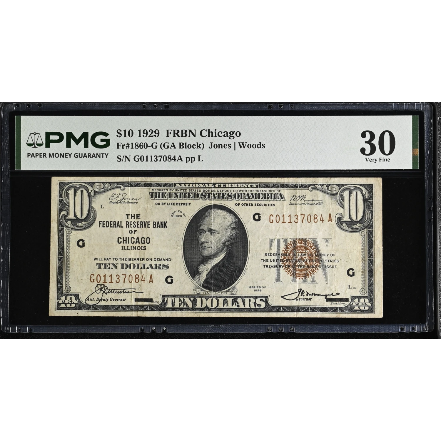1929 $10 Chicago Federal Reserve Note Fr. 1860-G - PMG 30
