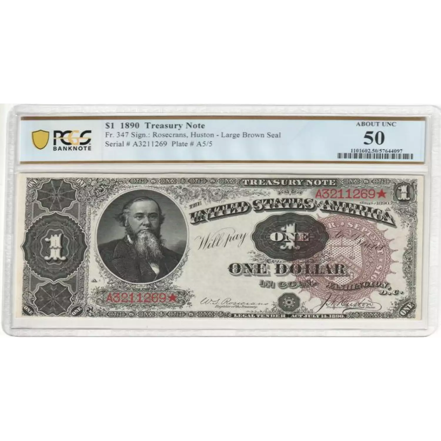 1890 $1 Treasury Note fr. 347 - PCGS 50
